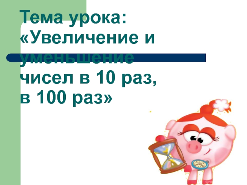 Слайд 2Тема урока: «Увеличение и уменьшение чисел в 10 раз, в 100 раз»