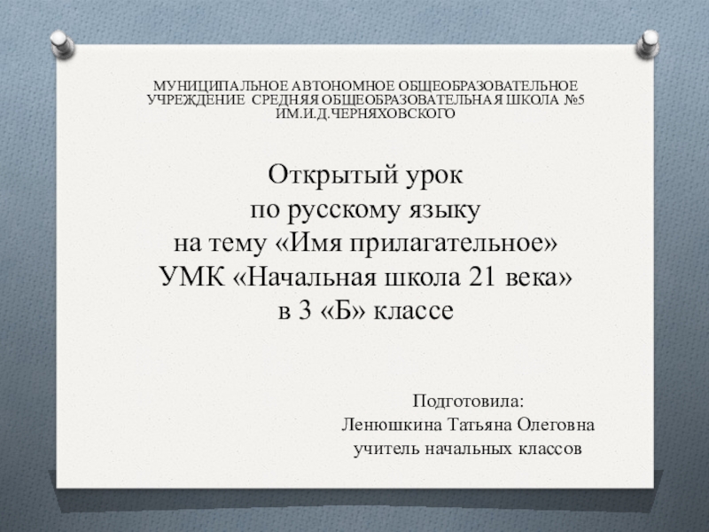 на тему «Имя прилагательное»