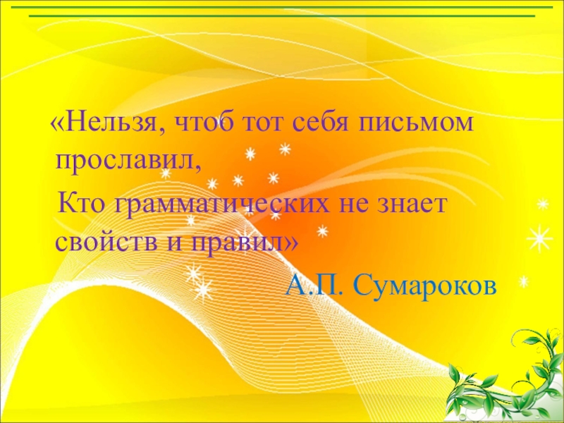 «Нельзя, чтоб тот себя письмом прославил, Кто грамматических не знает свойств и правил» А.П. Сумароков