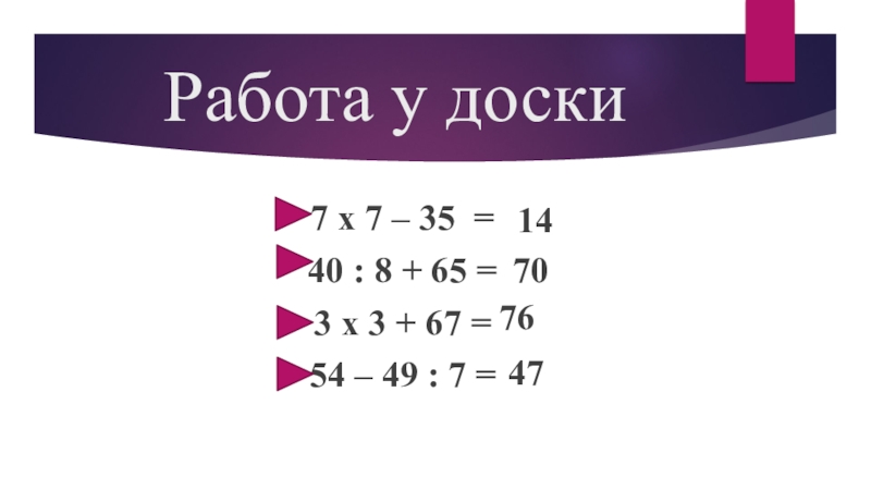 1. Совершенствовать вычислительные навыки при решении всех известных арифметические действий с числами в пределах 100 ( примеры, задачи, неравенства).