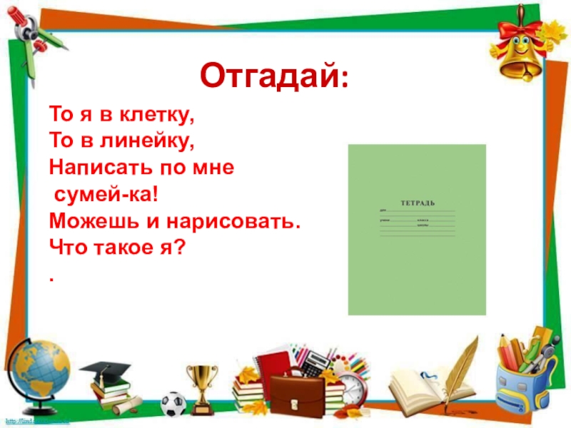 Отгадай:То я в клетку,То в линейку,Написать по мне сумей-ка!Можешь и нарисовать.Что такое я?.