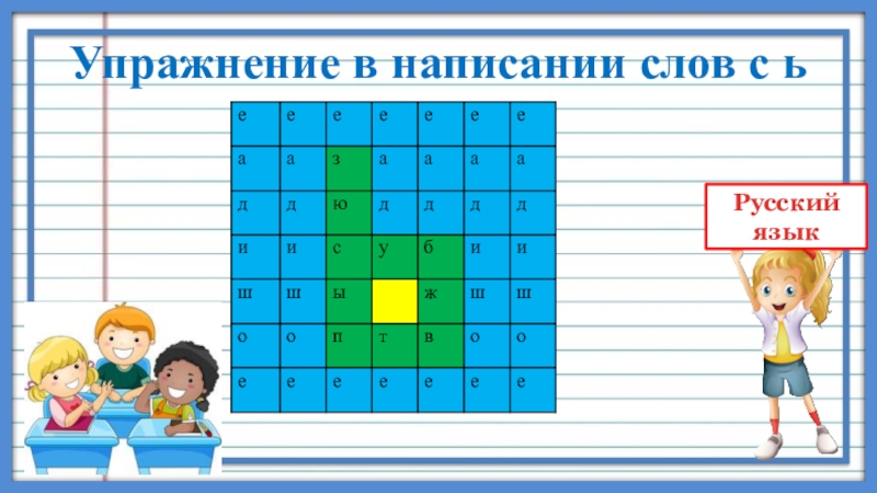Презентация, доклад на тему Открытый урок Упражнение в написании слов с ь