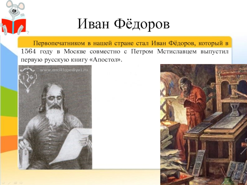 Первопечатником в нашей стране стал Иван Фёдоров, который в 1564