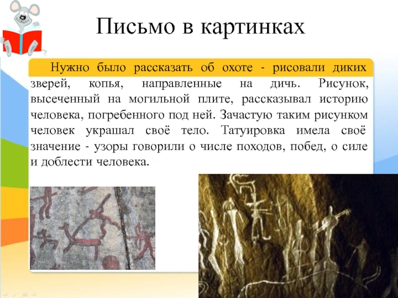 копья, направленные на дичь. Рисунок, высеченный на могильной плите, рассказывал историю человека, погребенного под ней. Зачастую таким рисунком человек украшал своё тело. Татуировка имела своё значение - узоры говорили о числе походов, побед, о силе и доблести человека.