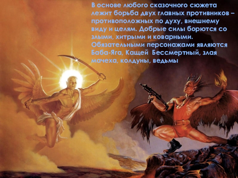 Слайд 8В основе любого сказочного сюжета лежит борьба двух главных противников –
