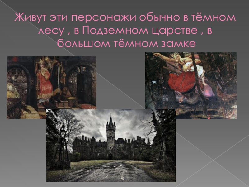 Слайд 11Живут эти персонажи обычно в тёмном
