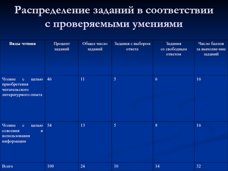 Слайд 7 Распределение заданий в соответствии с проверяемыми умениями