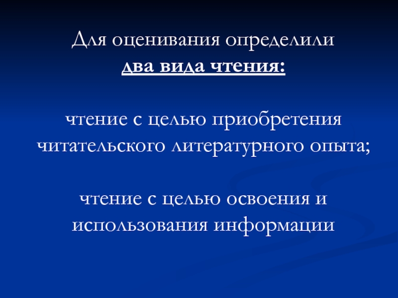 Слайд 5Для оценивания определили два вида чтения: чтение с целью приобретения читательского литературного