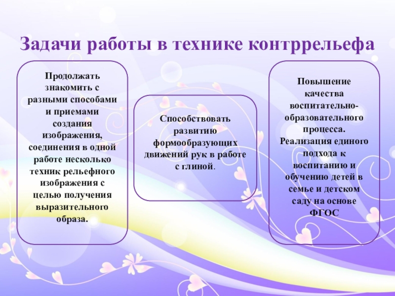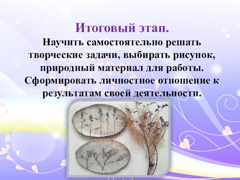 Способствовать развитию формообразующих движений рук в работе с глиной.