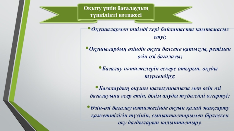 Оқыту үшін бағалаудың түпкілікті нәтижесі