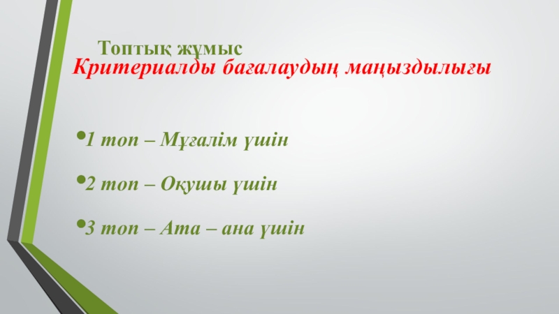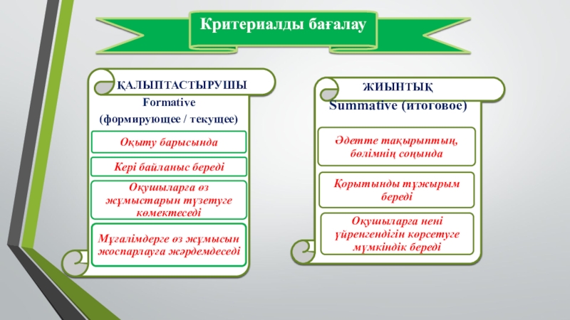 Мұғалімдер бағалау критерийлерін әзірлеуді үйренеді.