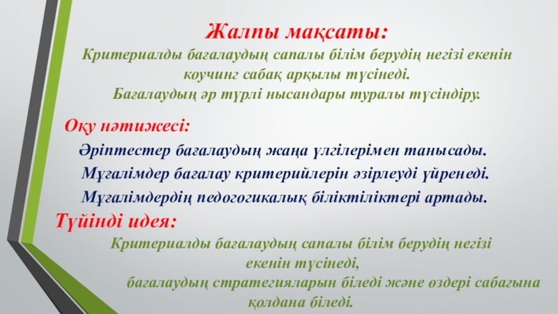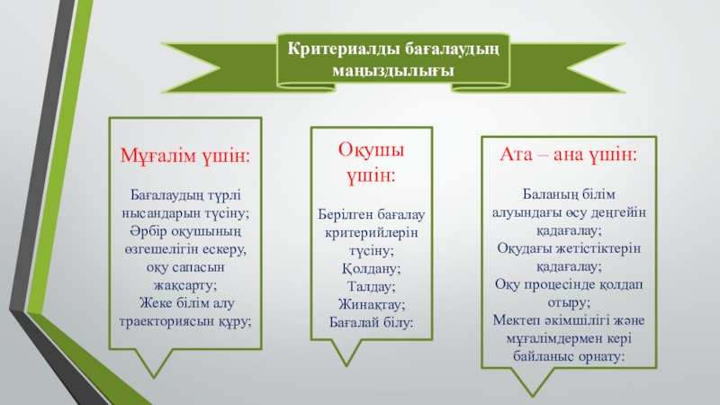 бағалаудың стратегияларын біледі және өздері сабағына қолдана біледі.