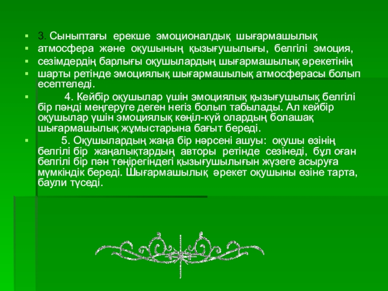 Слайд 43. Сыныптағы ерекше эмоционалдық шығармашылық