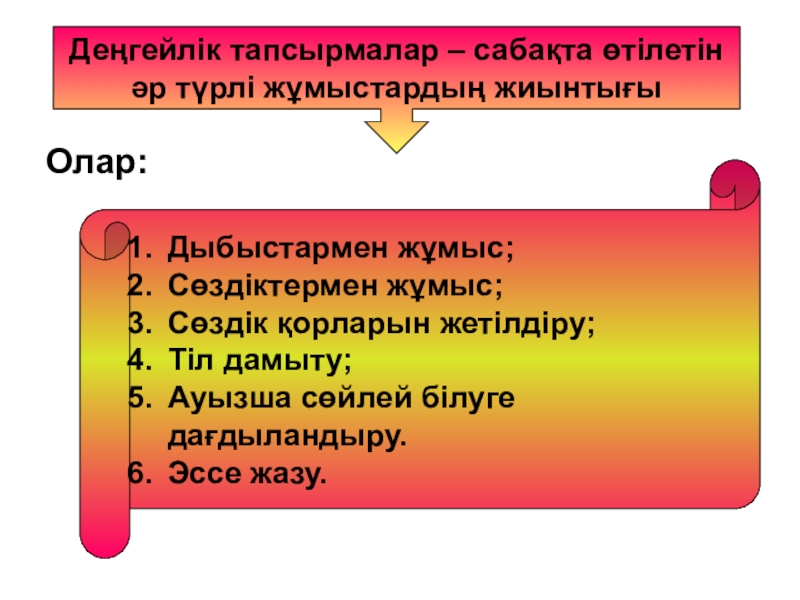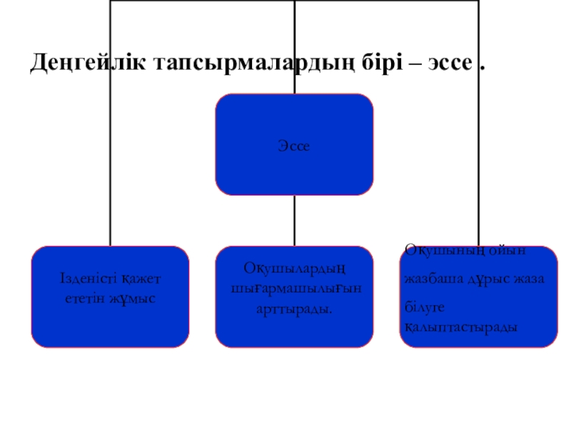 Слайд 23Деңгейлік тапсырмалардың бірі – эссе .