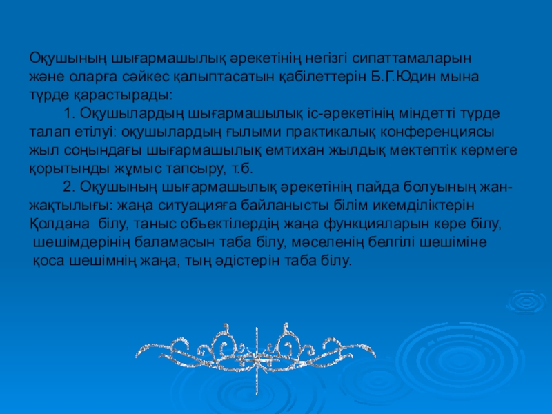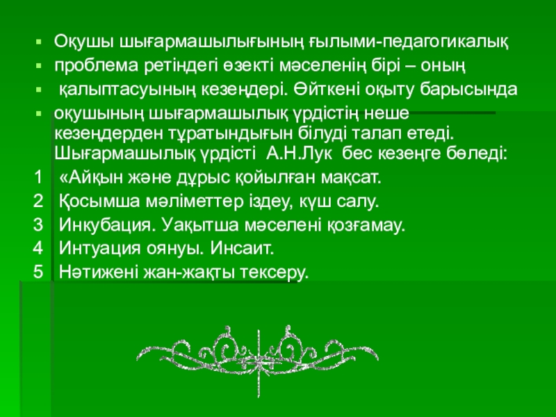 Слайд 6Оқушы шығармашылығының ғылыми-педагогикалық