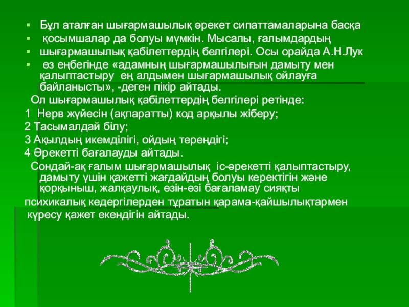 шығармашылық қабілеттердің белгілері. Осы орайда А.Н.Лук