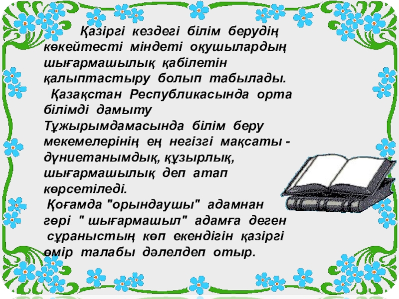Слайд 2 Қазіргі кездегі білім берудің көкейтесті міндеті
