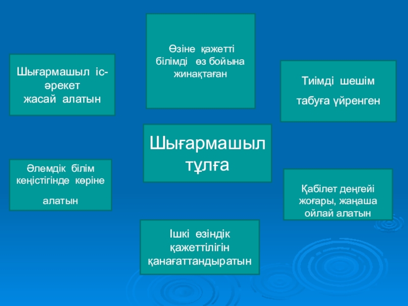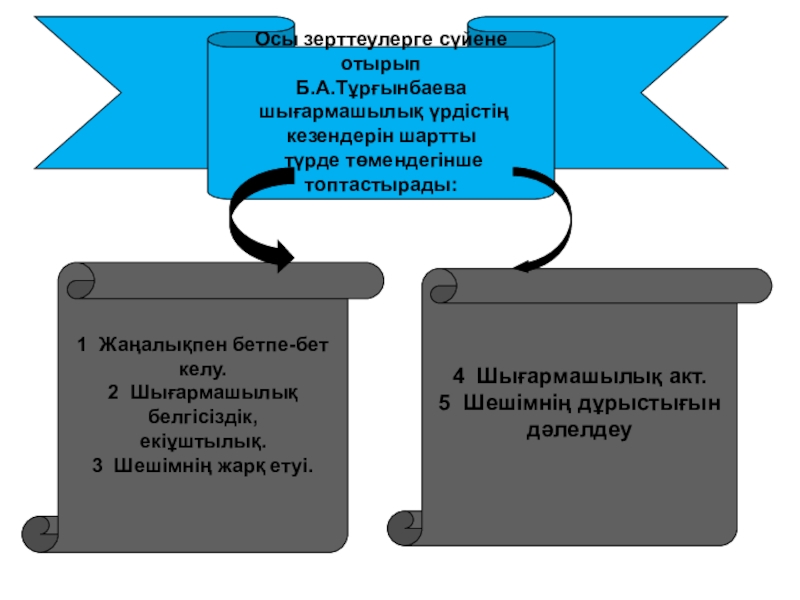 Слайд 5Бұл аталған шығармашылық әрекет сипаттамаларына басқа