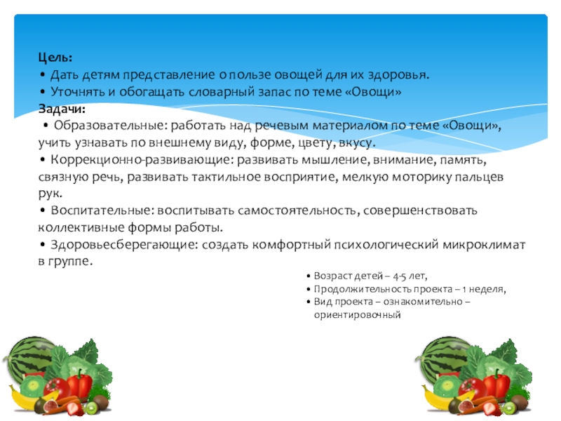 Тема « Овощи»