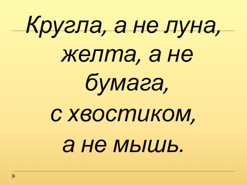Кругла, а не луна, желта, а не бумага, с хвостиком, а не мышь.