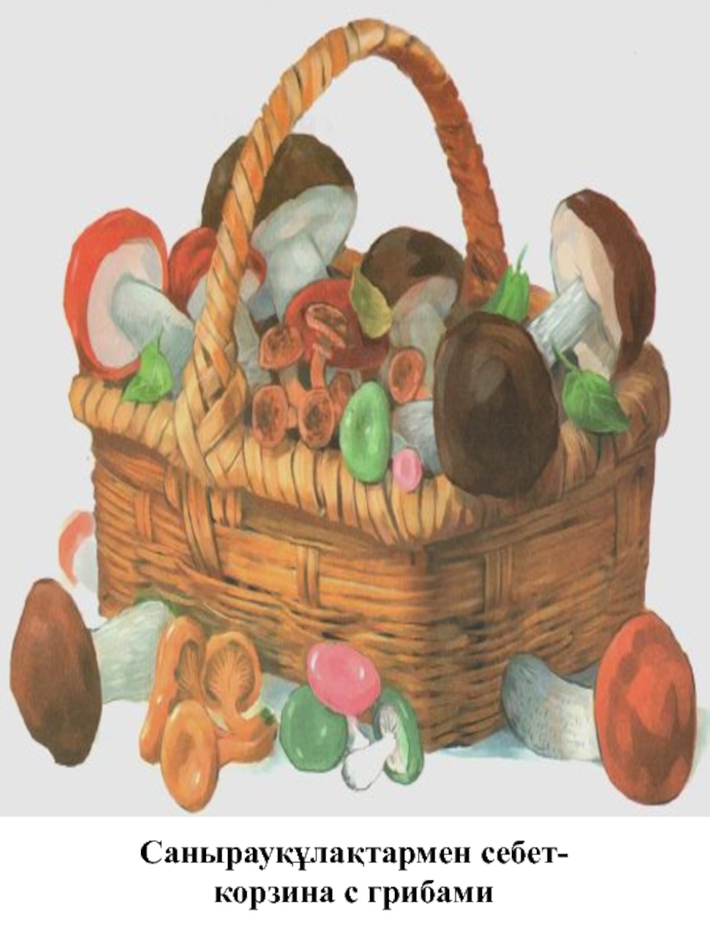 Слайд 100Санырауқұлақтармен себет- корзина с грибами