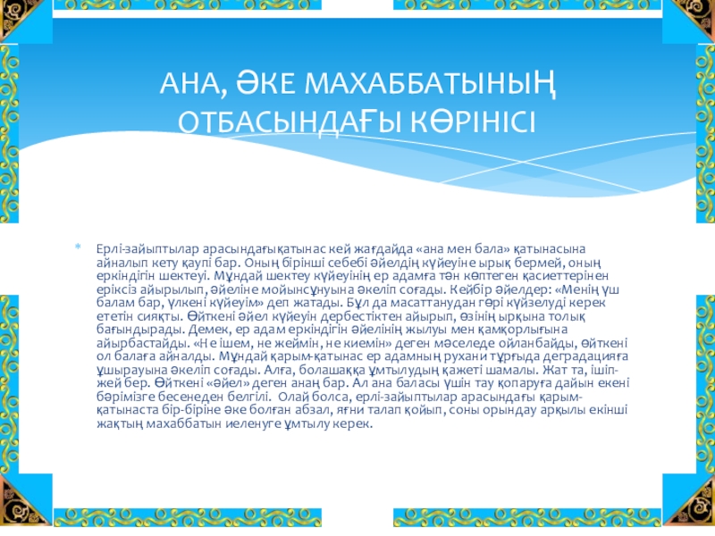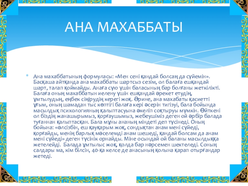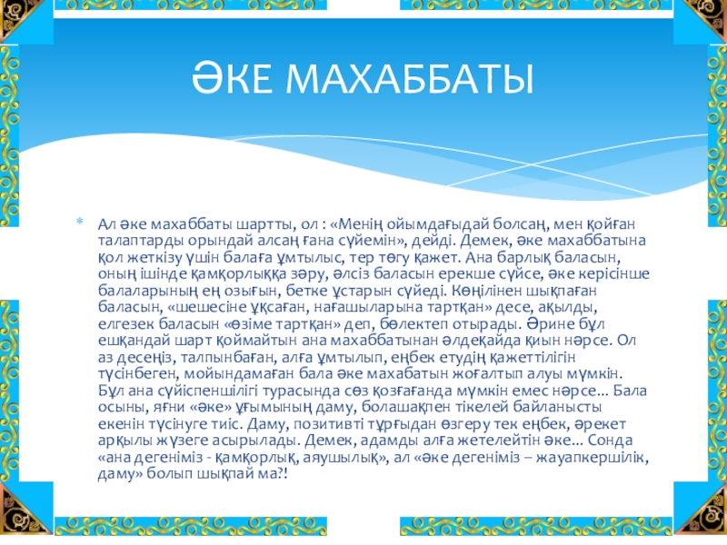 АНА, ӘКЕ МАХАББАТЫНЫҢ