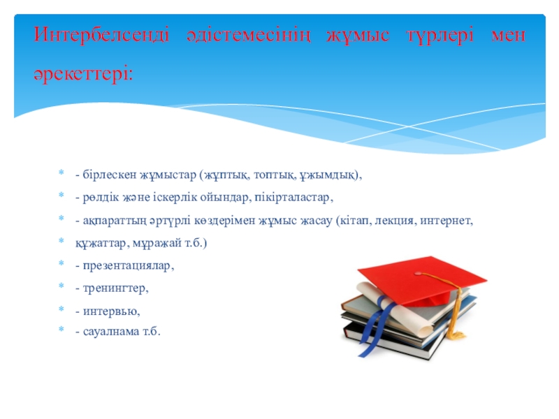Интербелсенді әдістемесінің жұмыс түрлері мен әрекеттері: