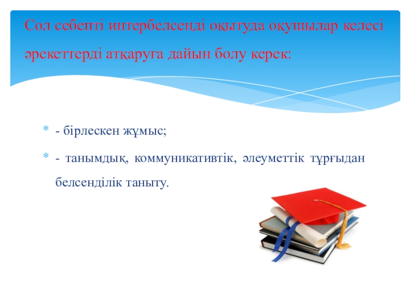 Сол себепті интербелсенді оқытуда оқушылар келесі әрекеттерді атқаруға дайын болу керек: