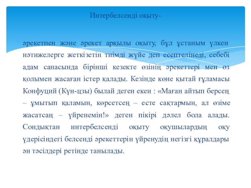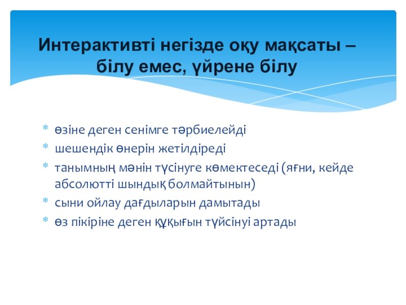 Интерактивті негізде оқу мақсаты – білу емес, үйрене бiлу