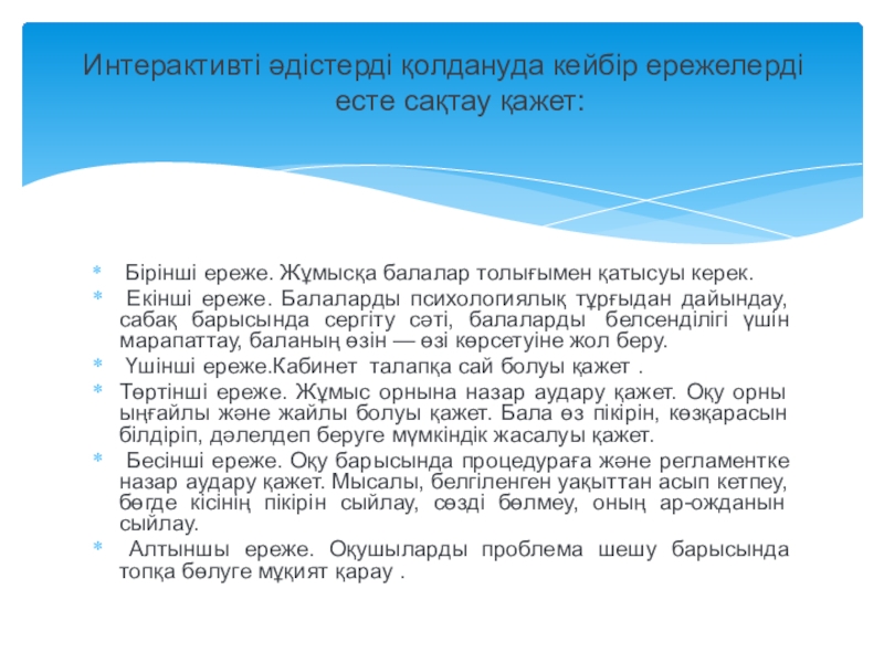 Интерактивті әдістерді қолдануда кейбір ережелерді