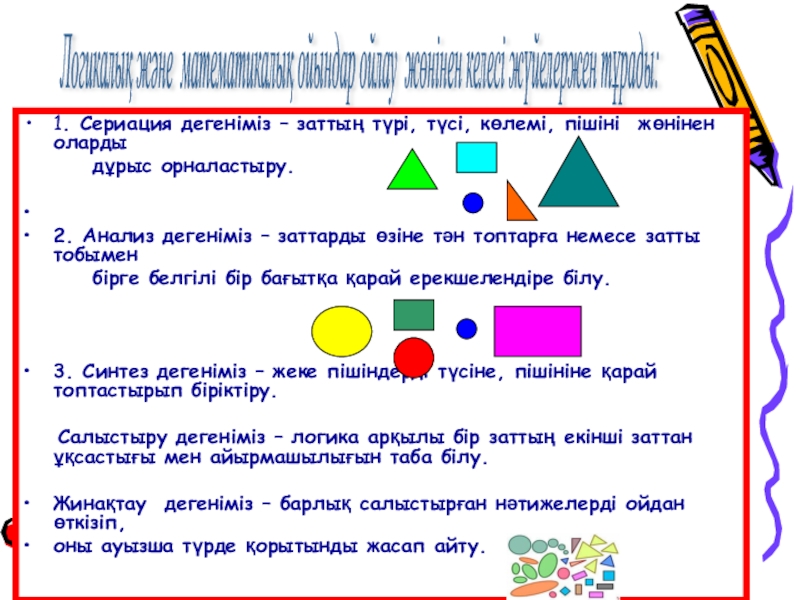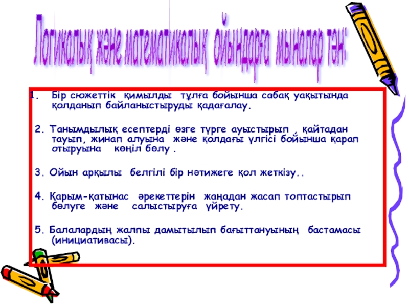 Логикалық және математикалық ойындарға мыналар тән: