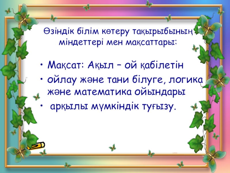 Өзіндік білім көтеру тақырыбының міндеттері мен мақсаттары:
