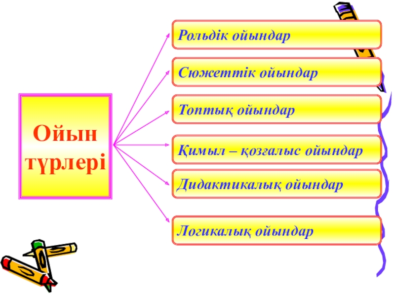 Ойын және ойын жаттығуларын бірнеше топтарға бөлуге болады.