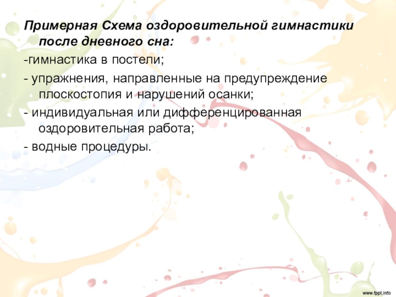 Слайд 7Примерная Схема оздоровительной гимнастики после дневного сна: