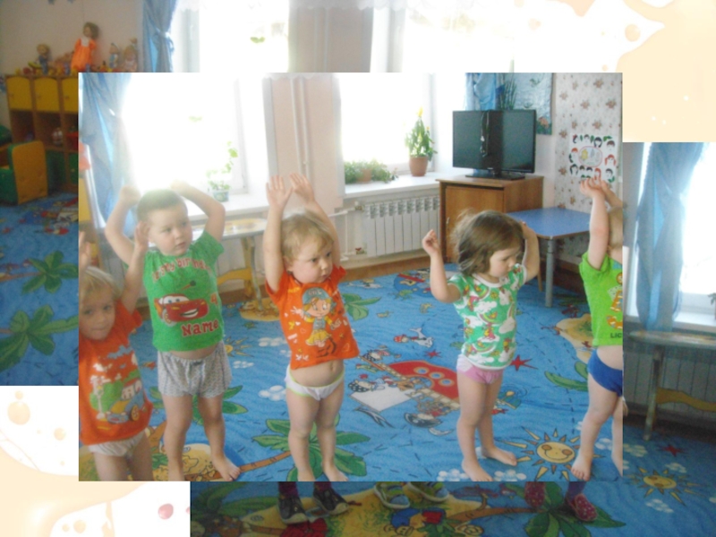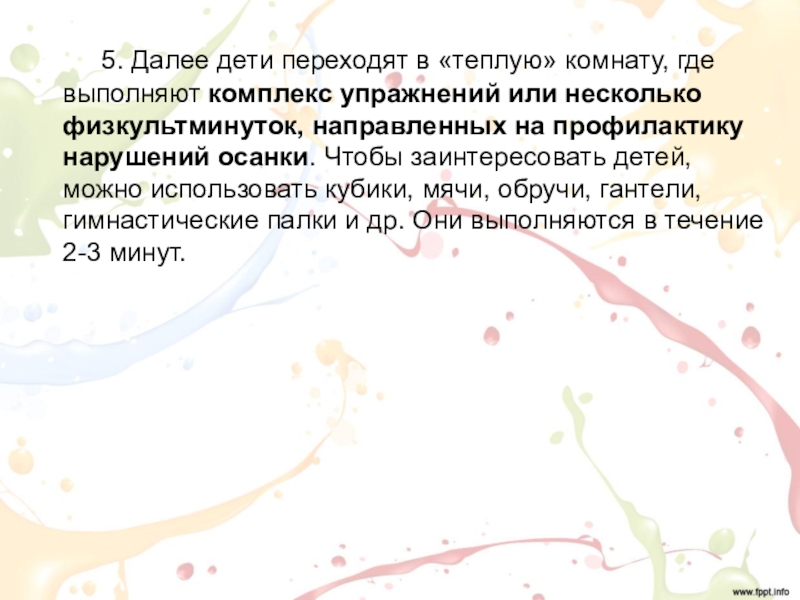 Слайд 13 5. Далее дети переходят в «теплую» комнату, где выполняют комплекс упражнений