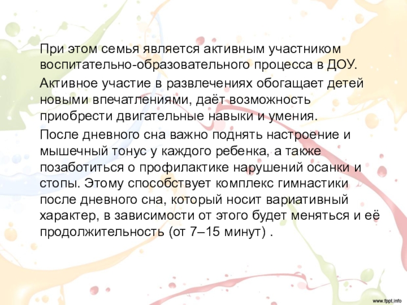 Слайд 5При этом семья является активным участником воспитательно-образовательного процесса в ДОУ.