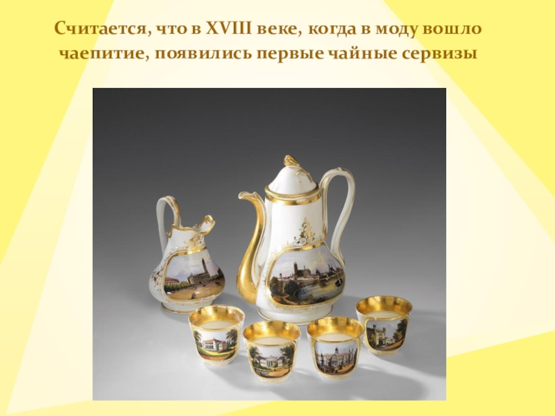 Считается, что в XVIII веке, когда в моду вошло чаепитие, появились первые чайные сервизы
