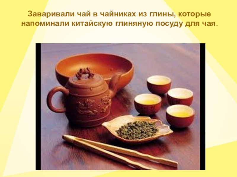 Заваривали чай в чайниках из глины, которые напоминали китайскую глиняную посуду для чая.