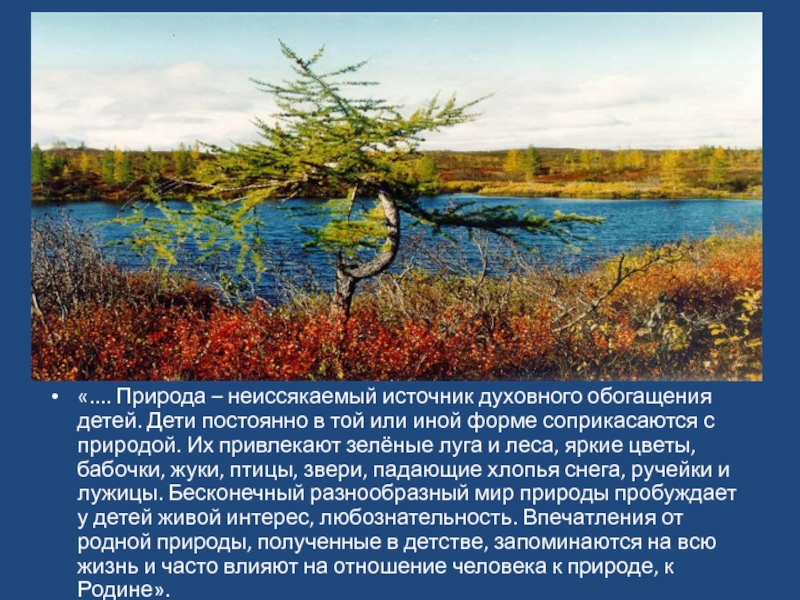 «.... Природа – неиссякаемый источник духовного обогащения детей. Дети постоянно в