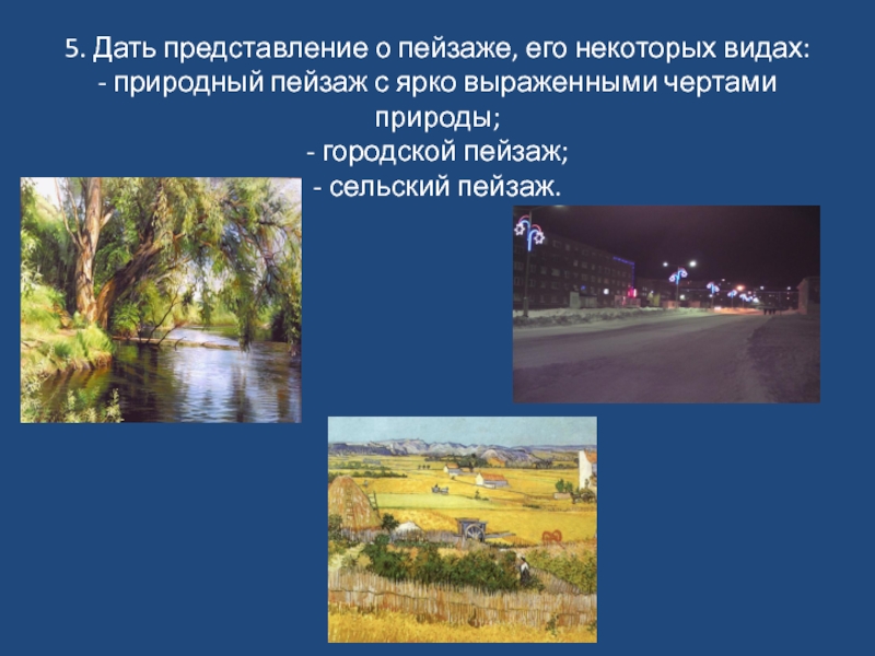Слайд 115. Дать представление о пейзаже, его некоторых видах: