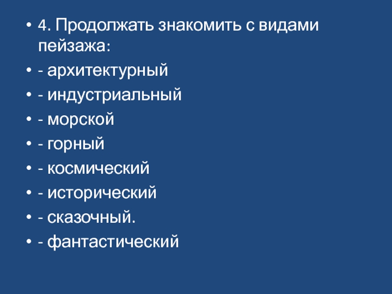 4. Продолжать знакомить с видами пейзажа: