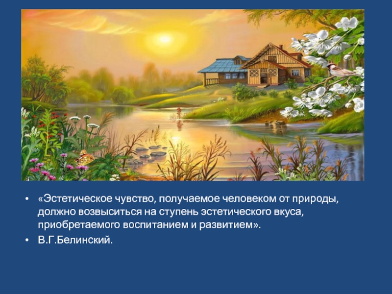 «Эстетическое чувство, получаемое человеком от природы, должно возвыситься на ступень эстетического