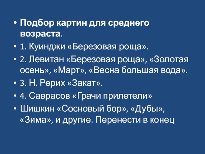 Подбор картин для среднего возраста.