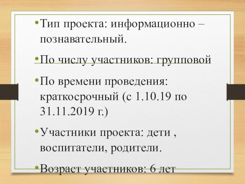 проведения: краткосрочный (с 1.10.19 по 31.11.2019 г.)