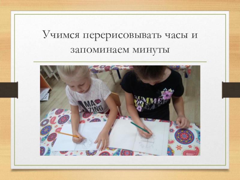 Слайд 6Учимся перерисовывать часы и запоминаем минуты