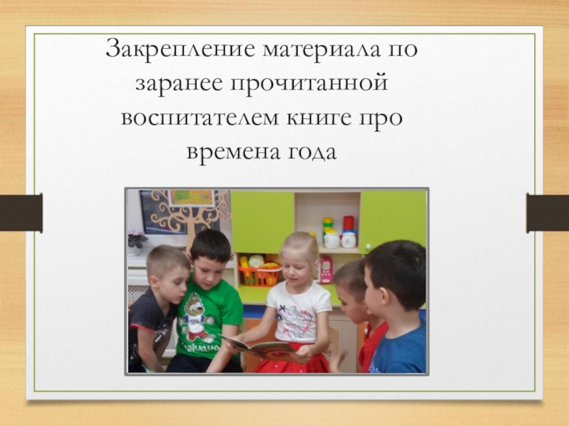 Слайд 12Закрепление материала по заранее прочитанной воспитателем книге про времена года
