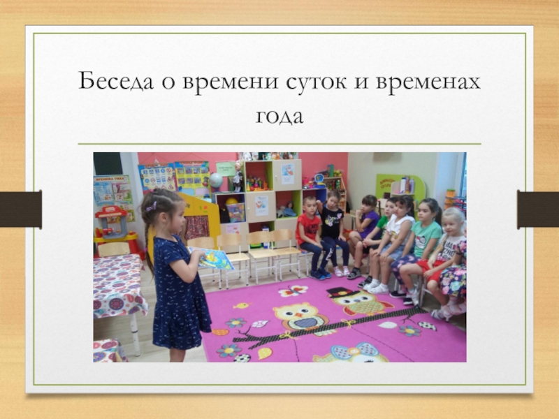 Формировать представления детей об отрезках времени , их цикличностью , а также днем, месяцем,годом.