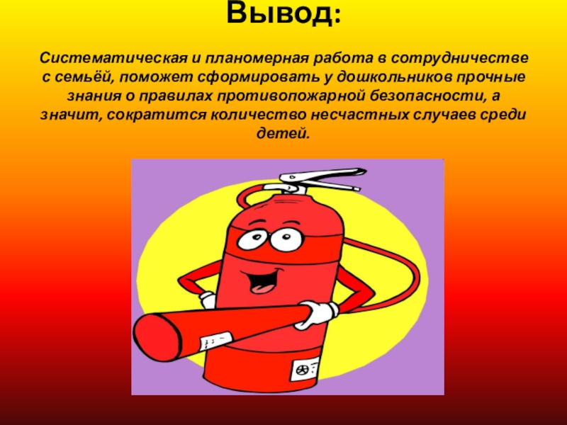 знания о правилах противопожарной безопасности, а значит, сократится количество несчастных случаев среди детей.