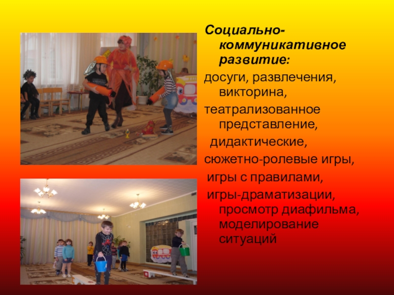 игры-драматизации, просмотр диафильма, моделирование ситуаций