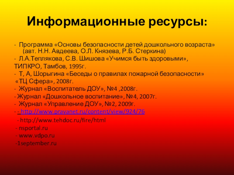 - Программа «Основы безопасности детей дошкольного возраста» (авт. Н.Н. Авдеева,